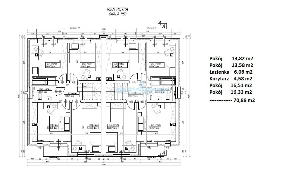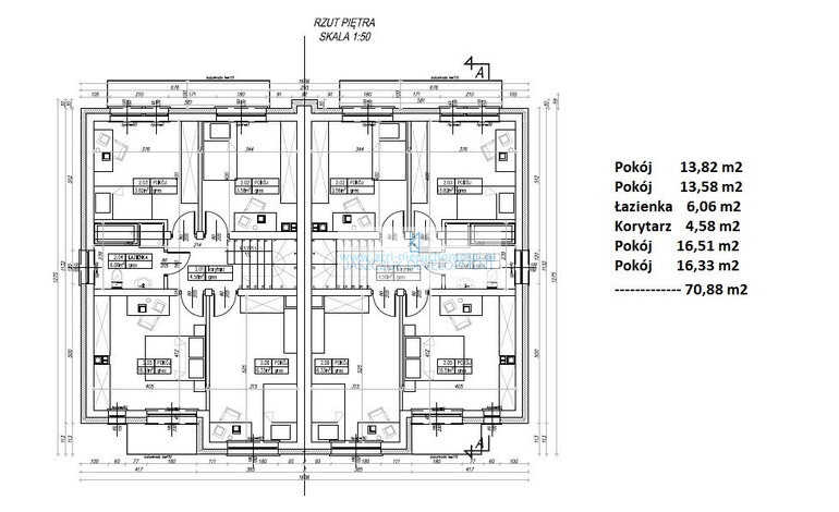 Oferowany dom ma powierzchnię 143,96 m². Na parter składają się: wiatrołap, korytarz, kuchnia, salon z jadalnią, kotłownia, łazienka, garaż; natomiast na piętrze znajdziemy: korytarz, 4 pokoje oraz łazienka. Dom ma swój ogród o pow. ok. 240 m². Domy będą wyposażone w instalacje do podłączenia ogrzewania za pomocą gazu miejskiego.