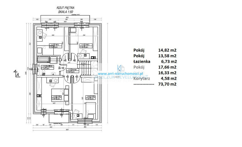 Oferowany dom ma powierzchnię 149,63 m². Na parter składają się: wiatrołap, korytarz, kuchnia, salon z jadalnią, kotłownia, łazienka, garaż; natomiast na piętrze znajdziemy: korytarz, 4 pokoje oraz łazienka. Dom usytuowany jest na działce pow. 680 m².