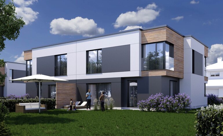 Przedstawiamy Państwu dwulokalowy dom bliźniaczy zaprojektowany na kameralnym osiedlu składającym się z 10 budynków, czyli 20 lokali.