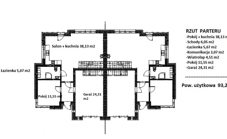 Oferowany lokal ma powierzchnię 162,75 m². Na parter składają się: - salon, jadalnia i kuchnia o powierzchni 38,13 m2, schody 6,05 m2, łazienka 5,67 m2, komunikacja 3,07 m2, wiatrołap o powierzchni 4,51 m2, pokój 1,55 m2, garaż 24,31 m2,