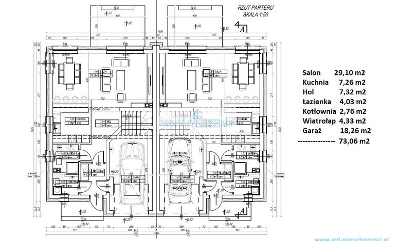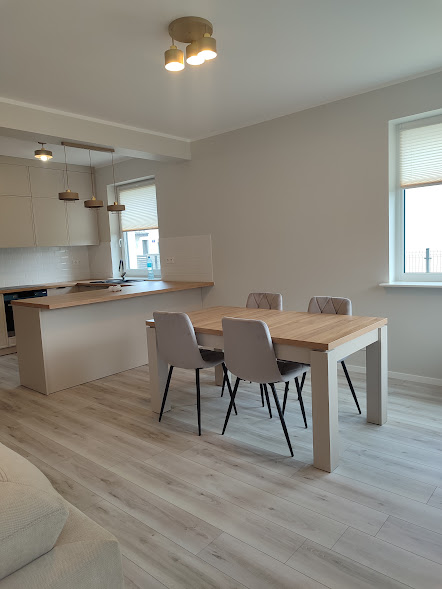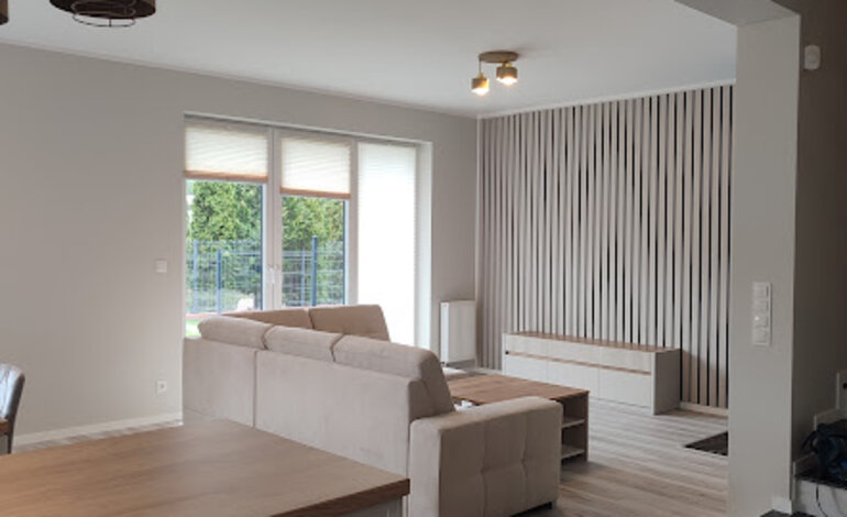 Oferowany dom ma powierzchnię 143,96 m². Na parter składają się: wiatrołap, korytarz, kuchnia, salon z jadalnią, kotłownia, łazienka, garaż; natomiast na piętrze znajduje się : korytarz, 4 pokoje oraz łazienka.